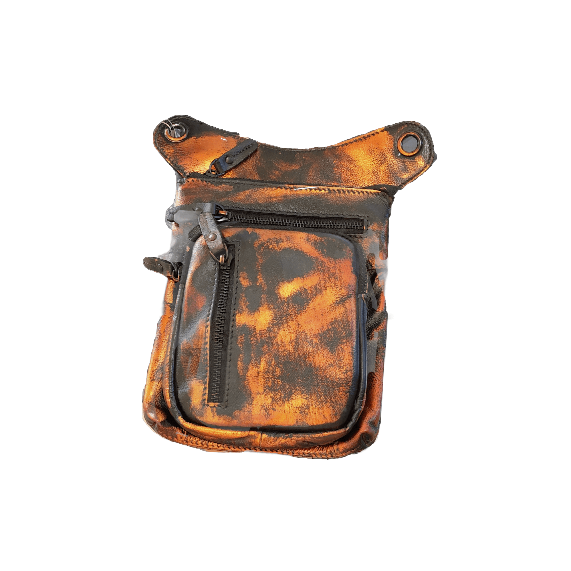 Men’s Leather Drop Waist Pack fit for all occasions.  Made of genuine cowhide leather.  Fits cell phone, smokes, cologne, keys, credit cards, money, and anything else you need.  Breathable, wear-resisting nylon straps and hardware, easy to clean, and comfortable whether on the bike or off the bike.  Single shoulder, cross-body bag that hangs at the waist with drop pack.  Approximately 6.7″ wide x 8.3″ tall.  Features:  adjustable shoulder strap made of high density nylon, strong hardware, and smooth zipper with leather zipper pull.